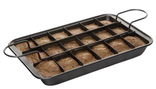 - To use, pour batter into pan and place divider in before baking; rack aids in cooling and brownie removal