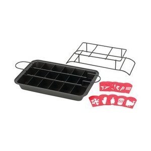 "New Perfect Brownie Pan Set Includes 10 Decorative Stencils Divider Bottom Insert Pan Rack" Feature